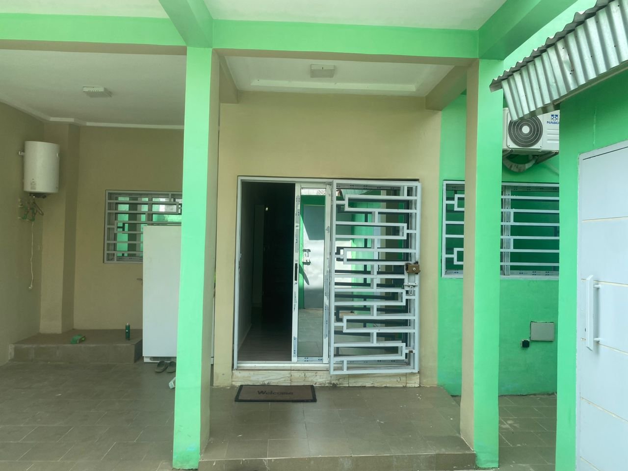-Cour arrière et garage avant,