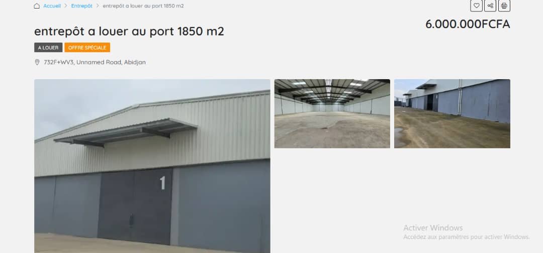 -Mise en location d’un entrepôt bâti sur 1850 couvert.